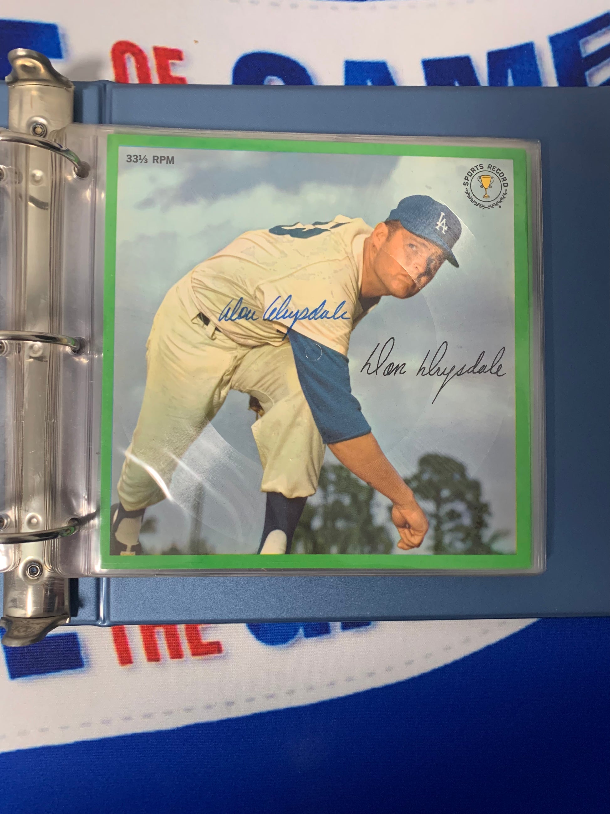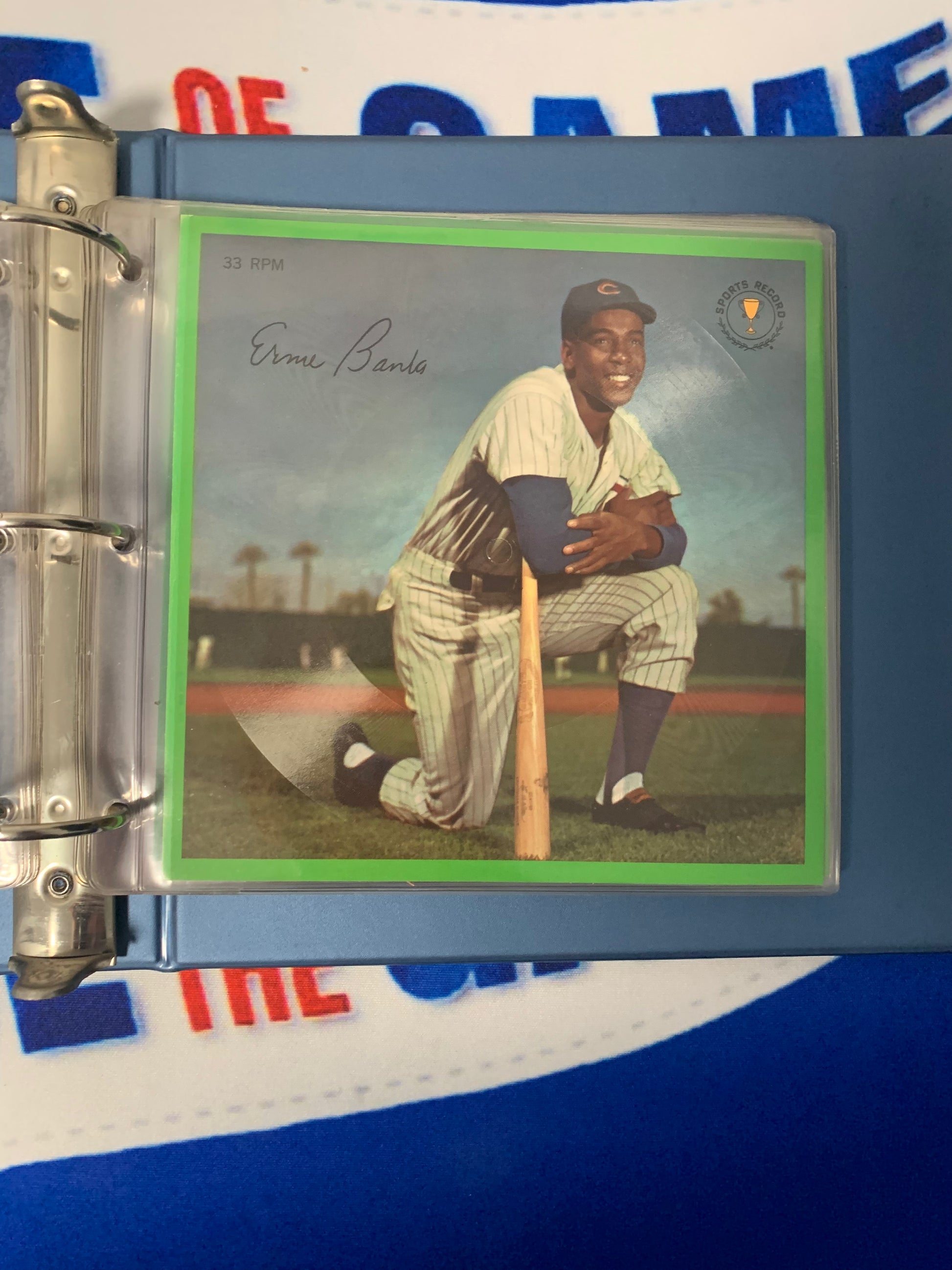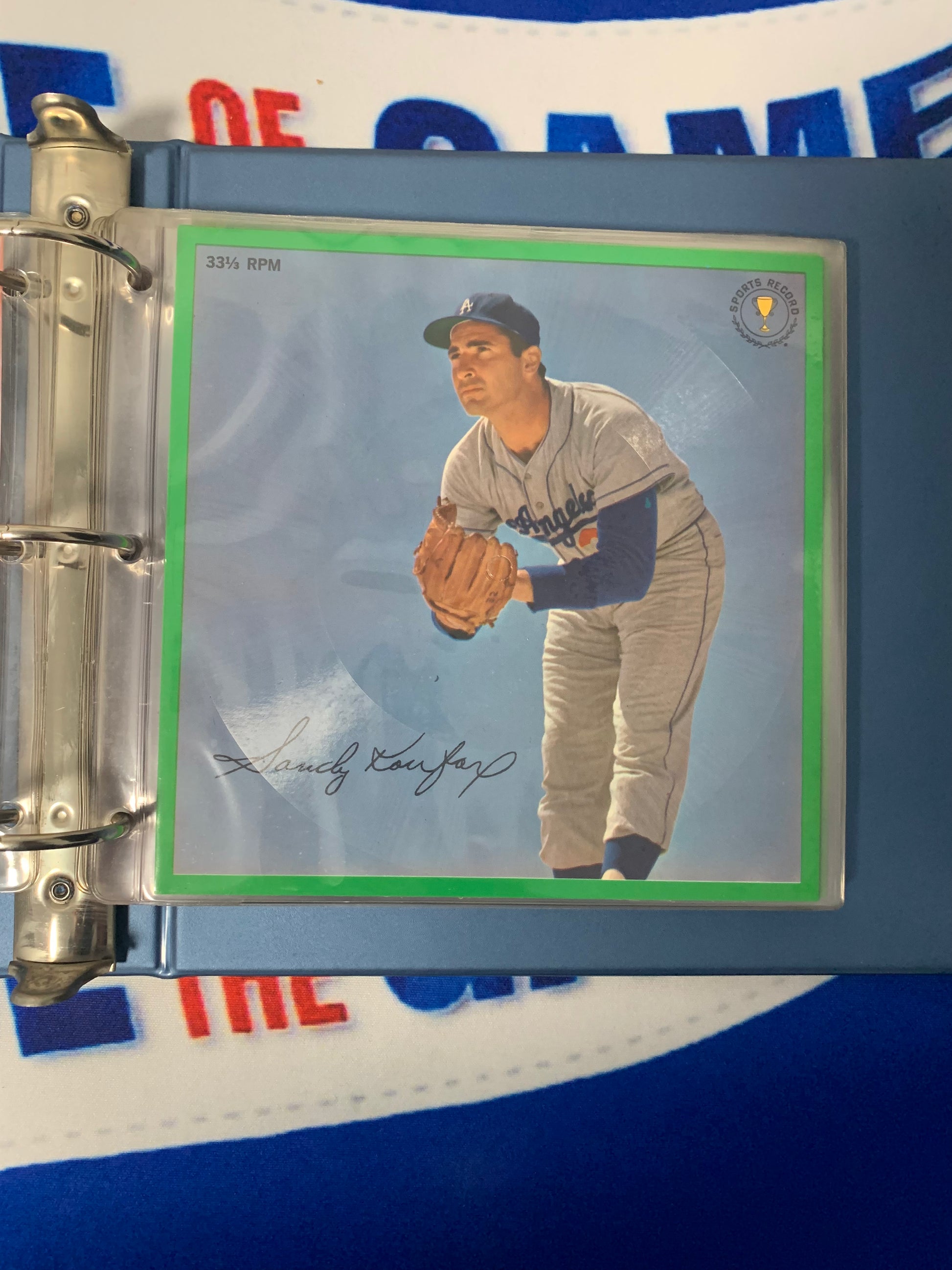 1964 Complete set of Columbia Sports Champions paperboard records with holes unpunched. Like-new, excellent condition records telling the stories of Mickey Mantle, Roger Maris, Whitey Ford, Don Drysdale, Sandy Koufax, Ernie Banks, Warren Spahn, Willie Mays, Al Kaline, Rocky Colavito, Jim Gentile, Ken Boyer, Bill Mazeroski, Bob Allison, Frank Robinson, and Pete Ward. Each record features a full-color photo on the front with player histories and stats on the reverse.