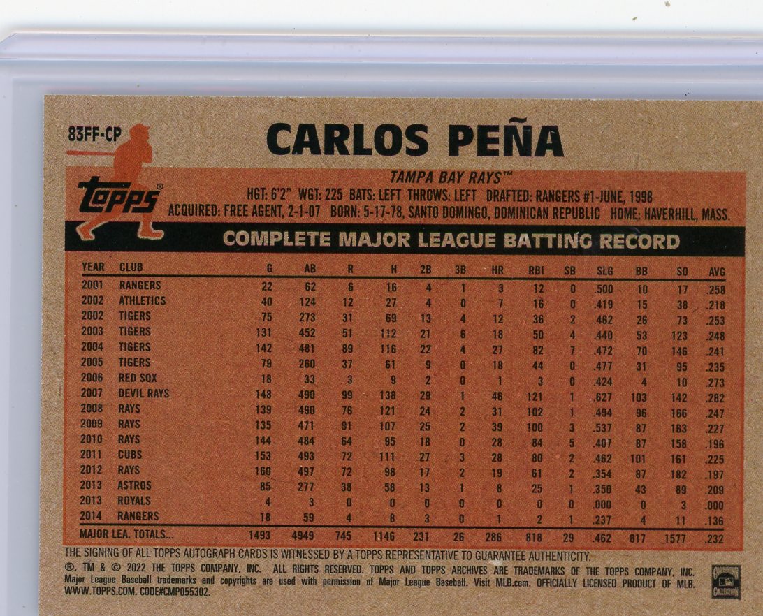 Carlos Pena 2022 Topps Archives Fan Favorites Certified Autograph #83FF-CP