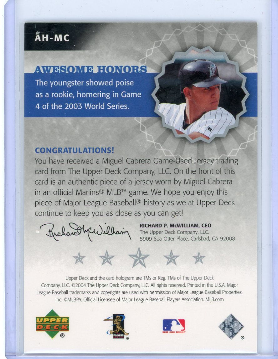 Miguel Cabrera 2004 Upper Deck Awesome Honors relic #'d 04/75