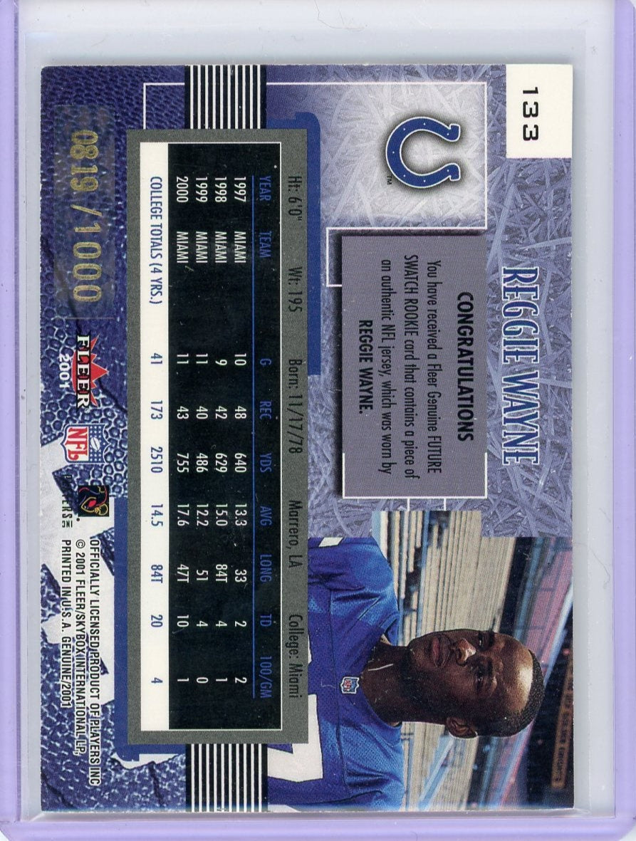 Reggie Wayne 2001 Fleer Genuine Future Watch Future Swatch relic #'d 0819/1000