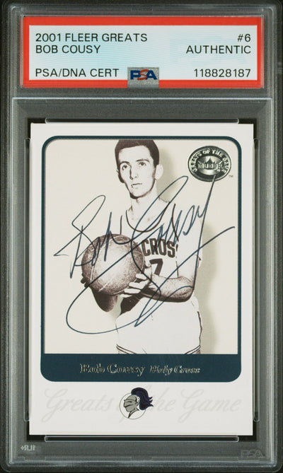 Bob Cousy 2001 Fleer Greats of the Game #6 IP Autograph PSA Authentic