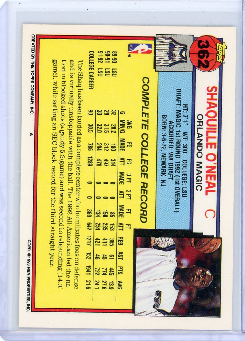 Shaquille O'Neal 1992-93 Topps '92 Draft Pick
