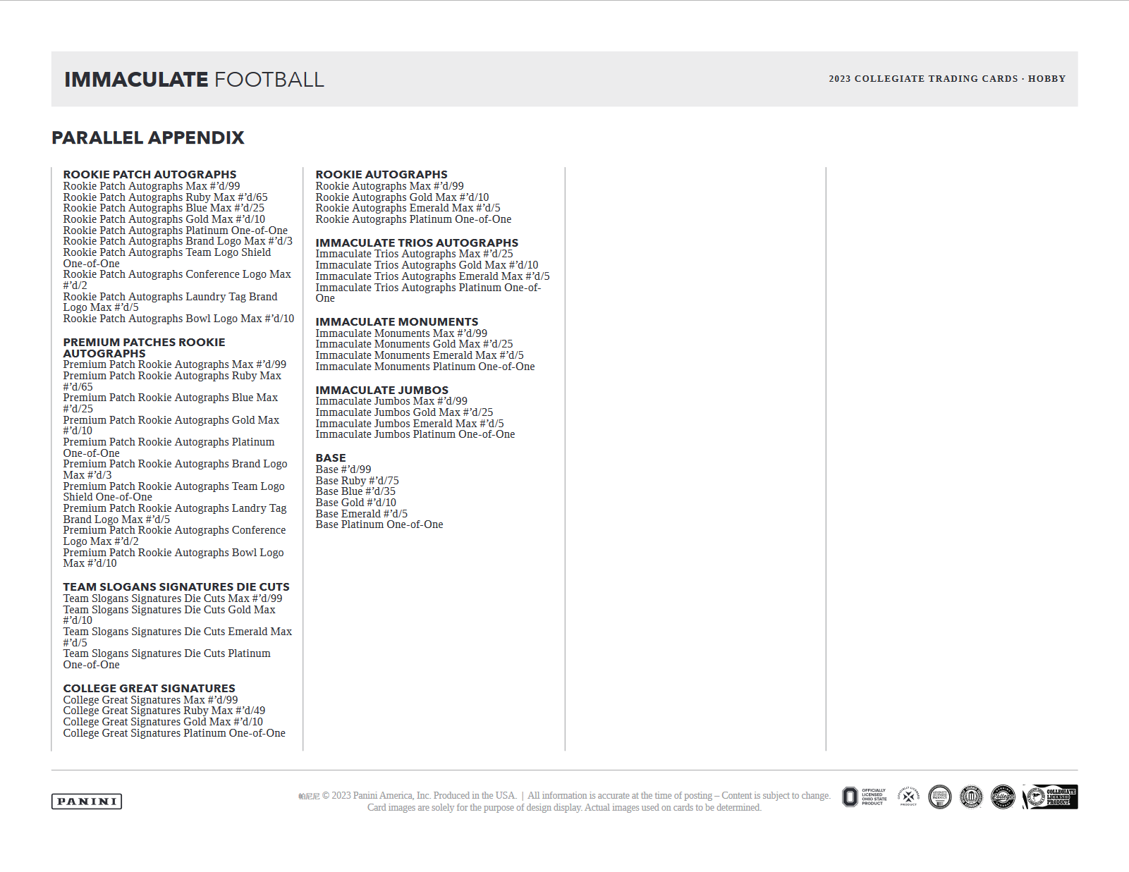 2023 Panini Immaculate Collegiate Football Hobby 5 Box Case