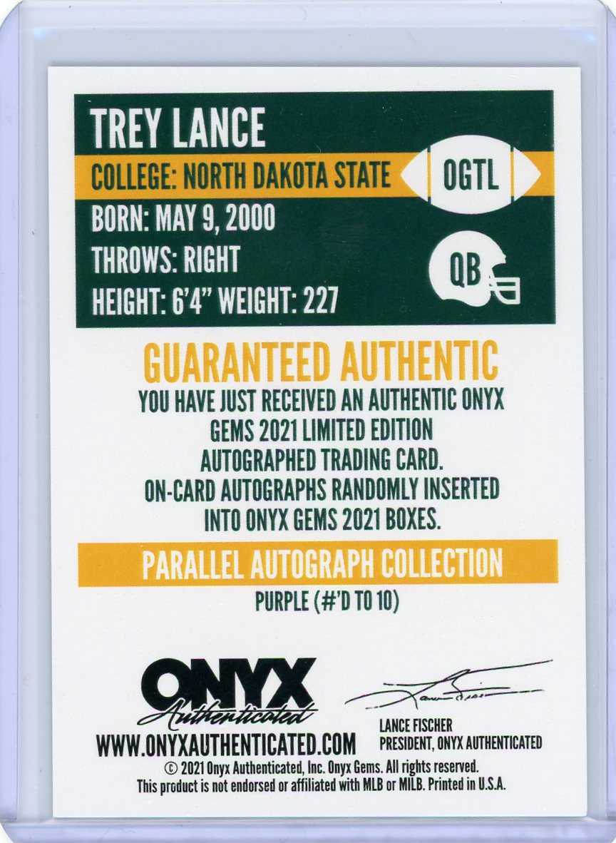 2021 Onyx Gems Trey Lance red autograph
