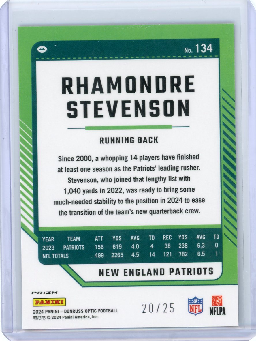 Rhamondre Stevenson 2024 Panini Donruss Optic Black Pandora #'d 20/25