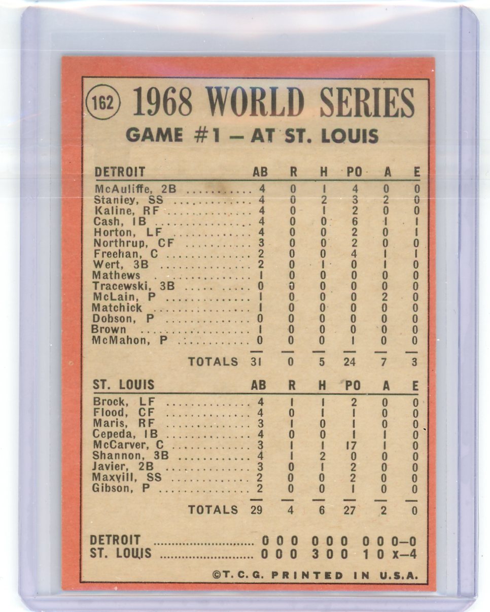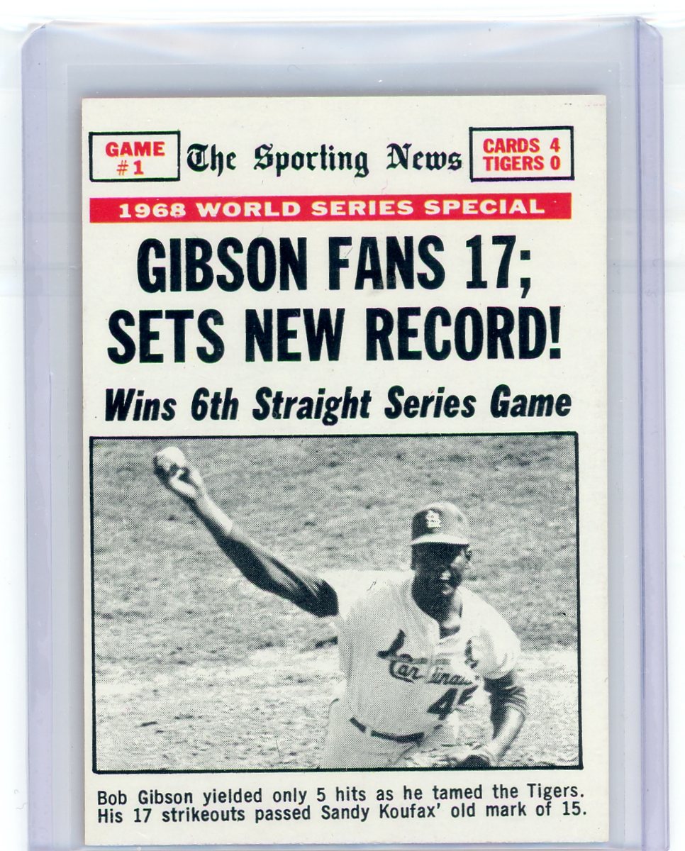 1969 Topps #162 World Series Gm. 1 Sporting News "Gibson Fans 17; Sets New Record!"