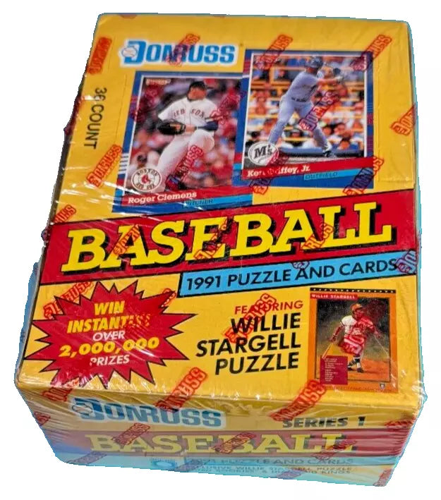 The 1991 Donruss set was issued in two series of 386 and 384 for a total of 770 standard-size cards. This set marked the first time Donruss issued cards in multiple series. The second series was issued approximately three months after the first series was issued. First series cards feature blue borders and second series green borders with some stripes and the players name in white against a red background. Subsets include Diamond Kings (1-27), Rated Rookies (28-47/413-432), AL All-Stars (48-56), MVP's (387-412) and NL All-Stars (433-441). There were also special cards to honor the award winners and the heroes of the World Series. On cards 60, 70, 127, 182, 239, 294, 355, 368, and 377, the border stripes are red and yellow.