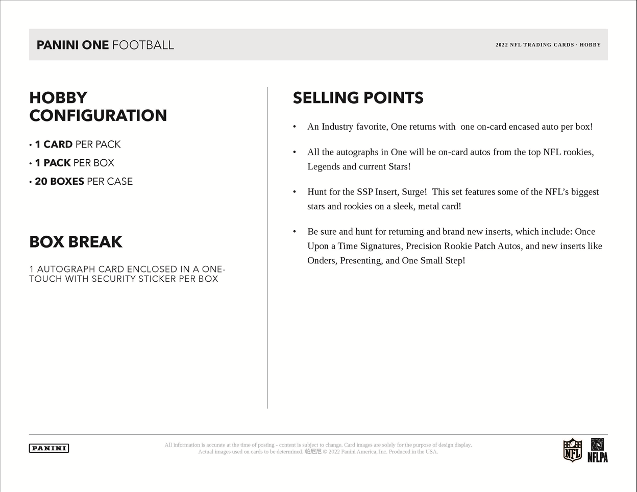 - An Industry favorite, One returns with one on-card encased auto per box!