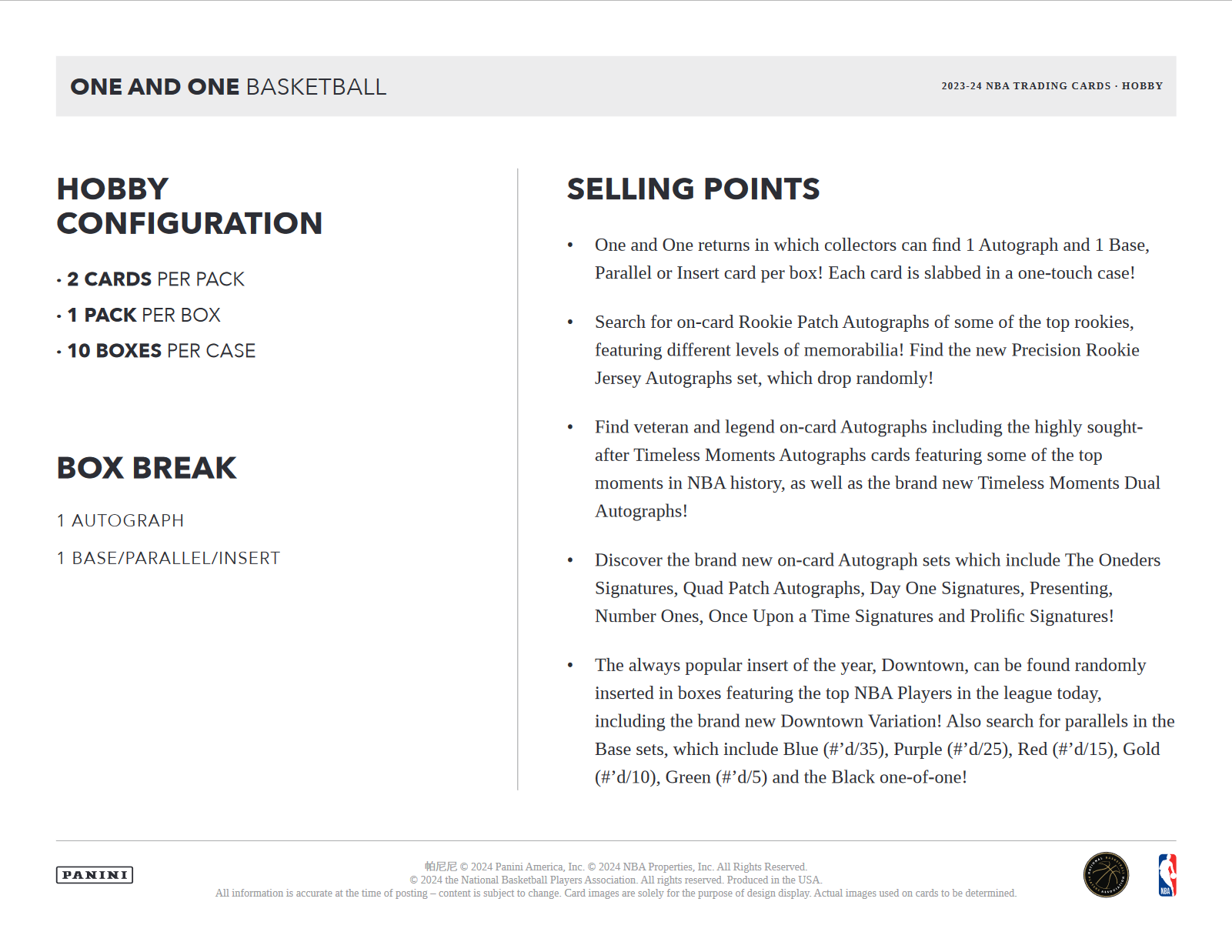 - One and One returns in which collectors can find 1 Autograph and 1 Base, Parallel or Insert card per box! Each card is slabbed in a one-touch case!