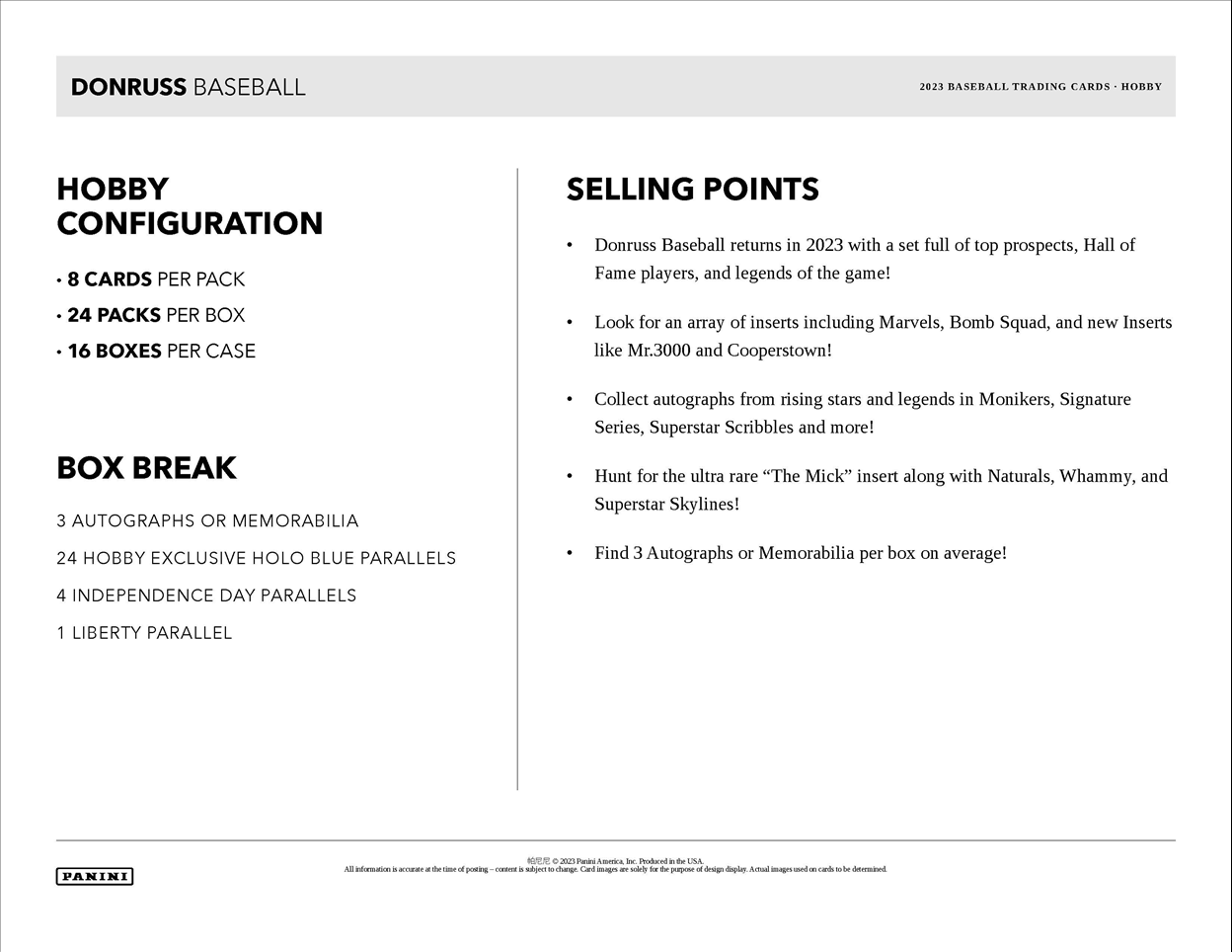 - Donruss Baseball returns in 2023 with a set full of top prospects, Hall of Fame players, and legends of the game!