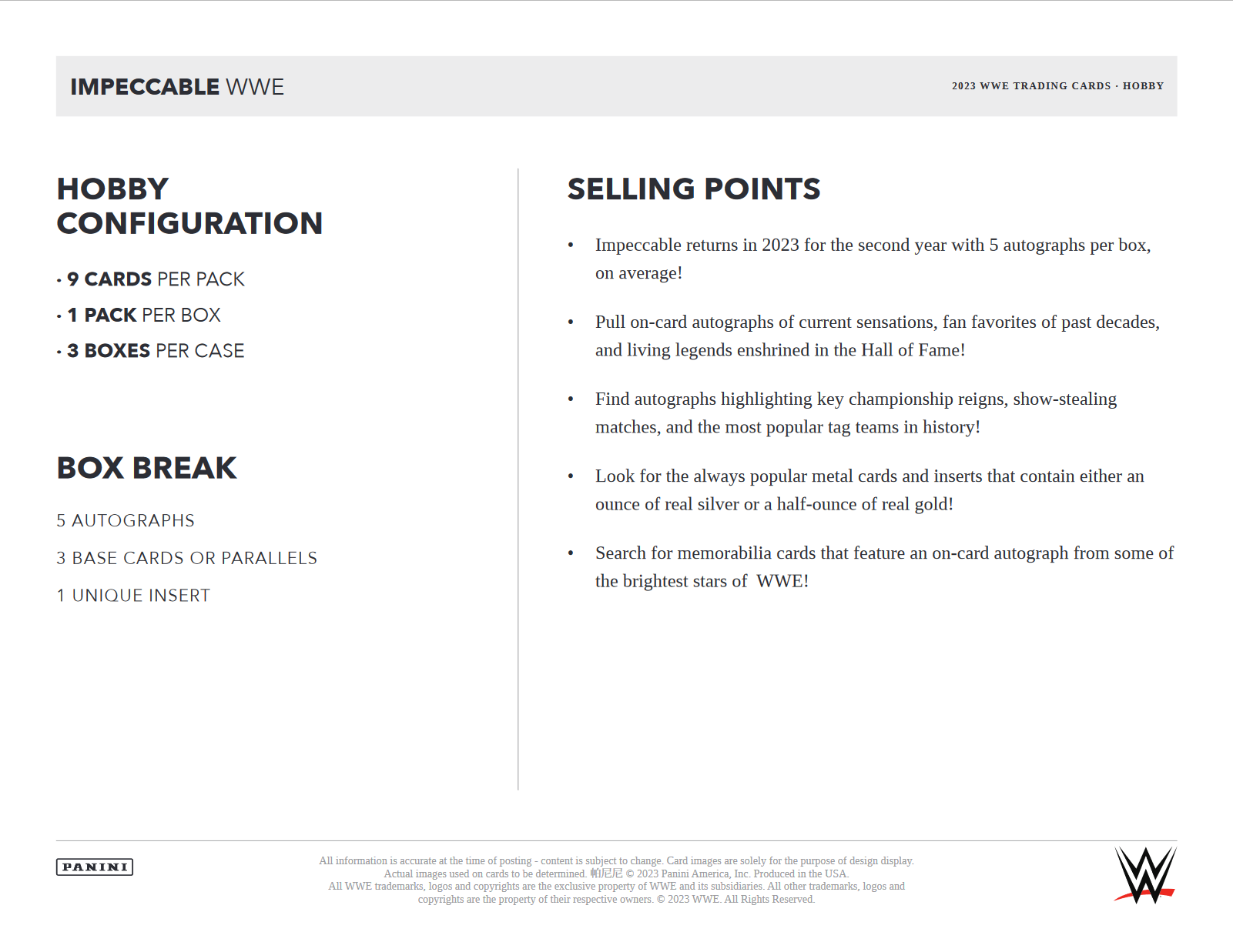 2023 Panini Impeccable WWE Hobby 3 Box Case