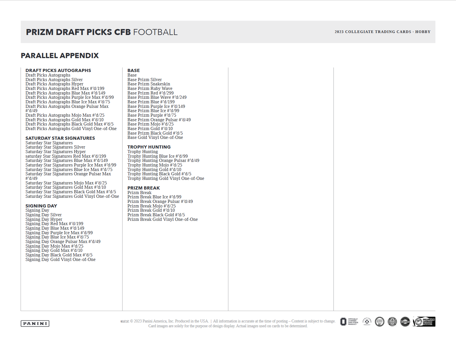 - Prizm Draft Picks has returned as the first collegiate football product for the 2023 draft class.