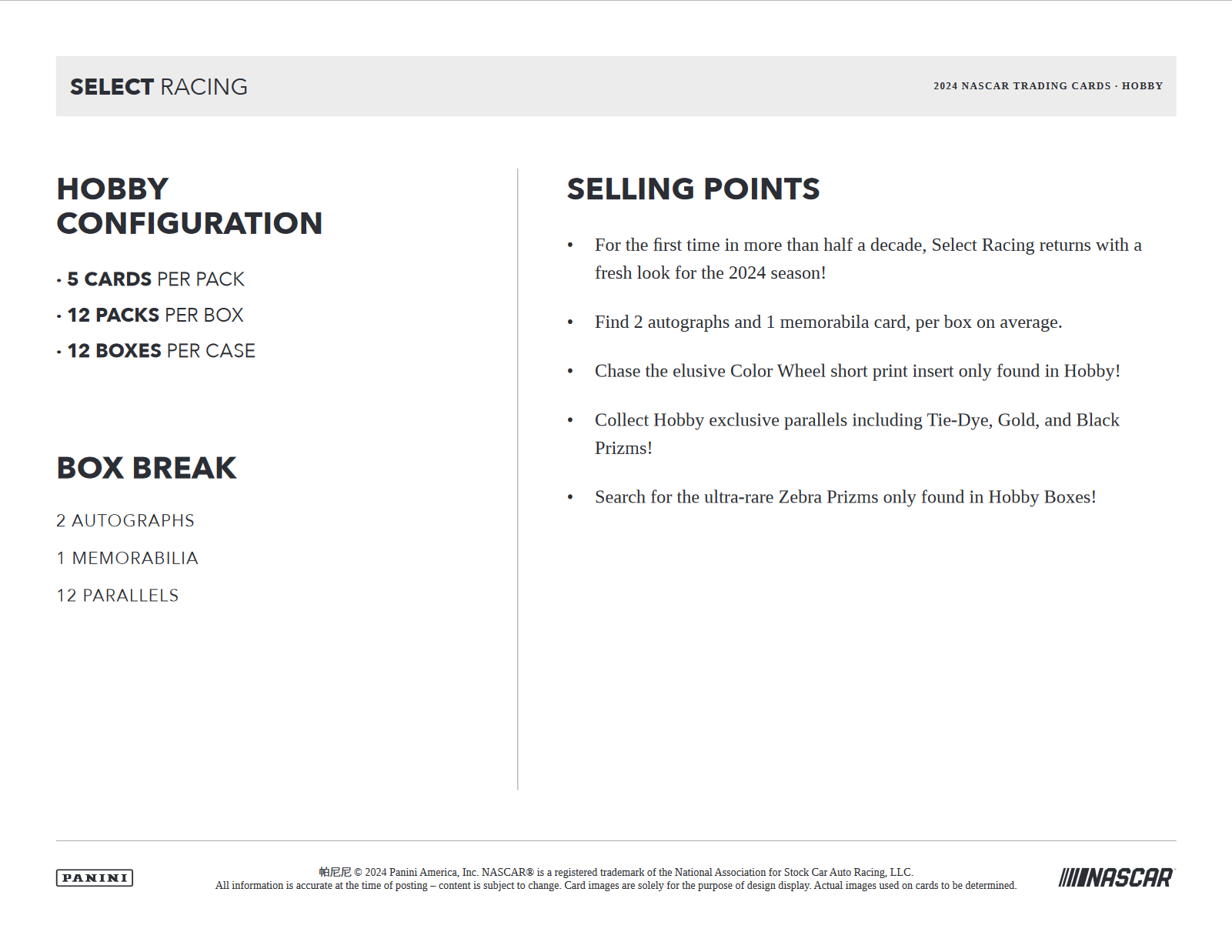 - For the first time in more than half a decade, Select Racing returns with a fresh look for the 2024 season!