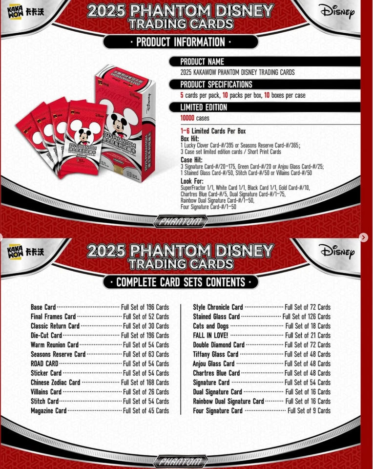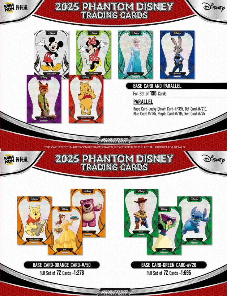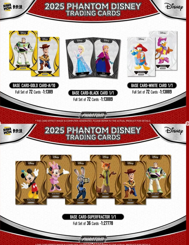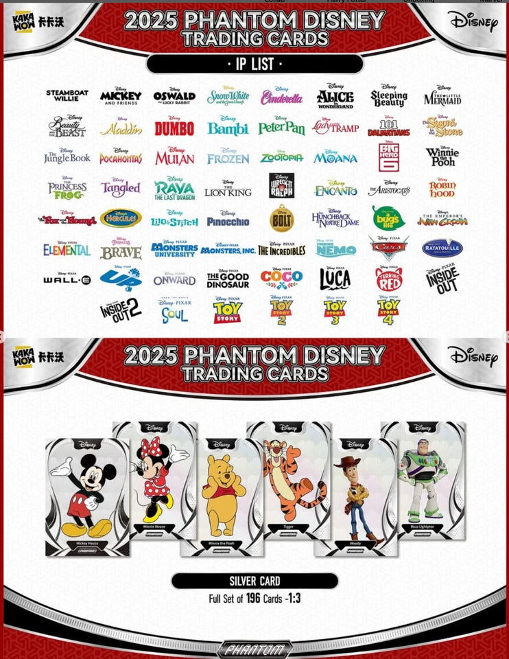 Disney Phantom returns with another exciting set of cards! Disney Phantom contains a 196 card base set featuring all of your favorite Disney characters. These characters are brought to you by all of your favorite movies including Toy Story, Peter Pan, Frozen, Zootopia and many more!