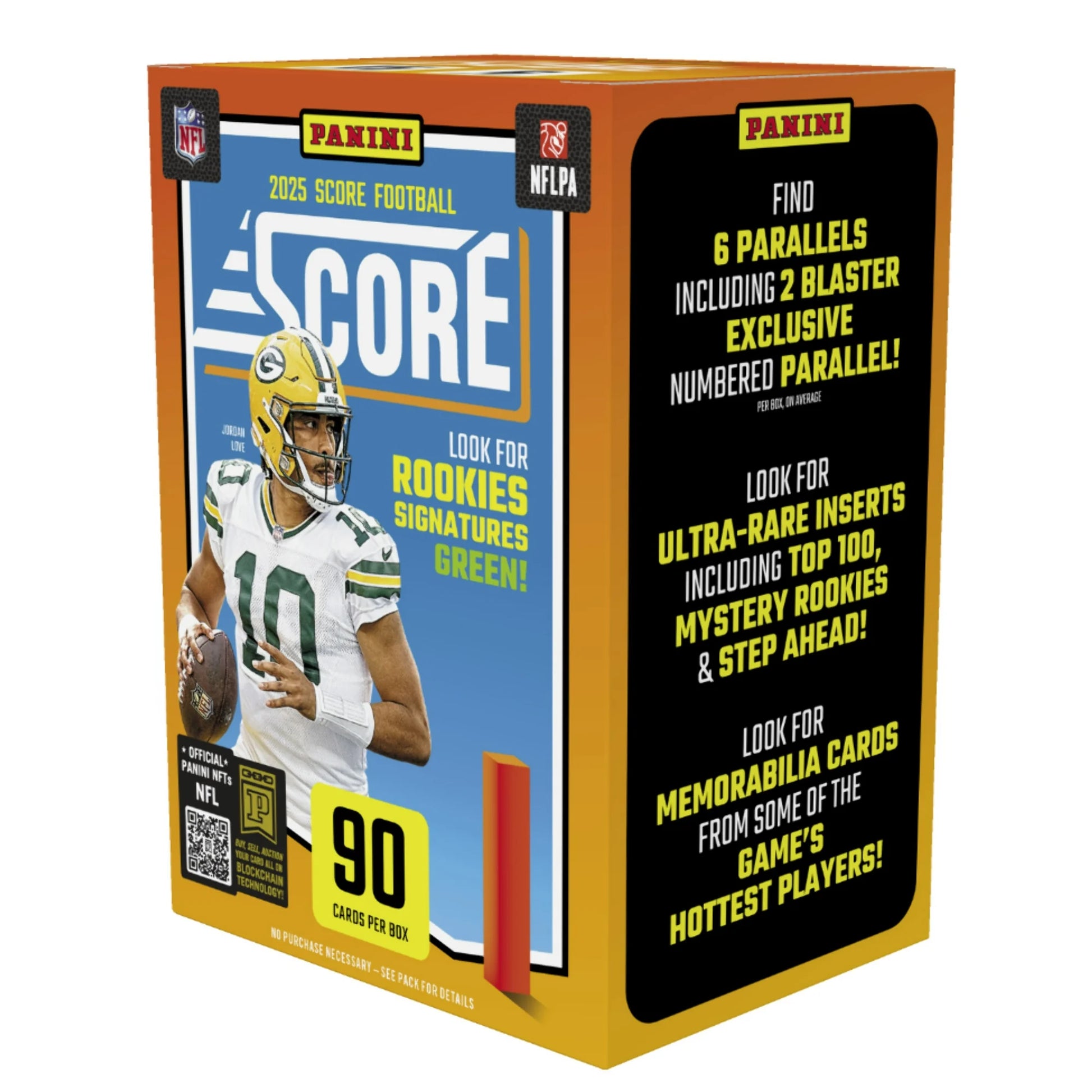 A cornerstone of the hobby, Score Football returns to launch the 2025 collecting season with a bold, wide-ranging celebration of the NFL, boasting a massive 400-card base set that includes 100 rookies, alongside vibrant inserts, autographs, and more.