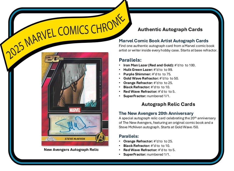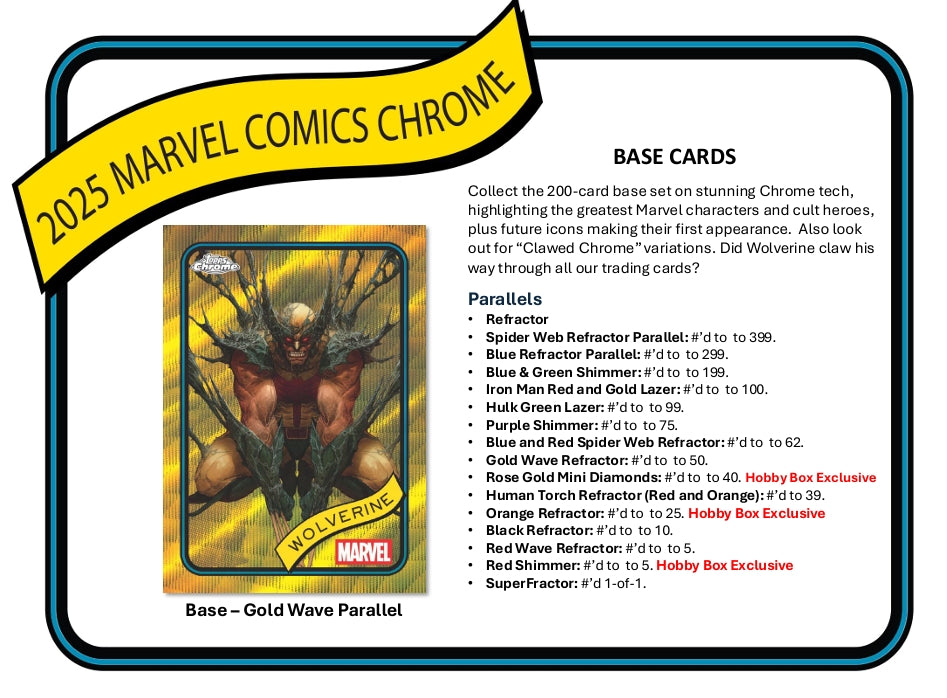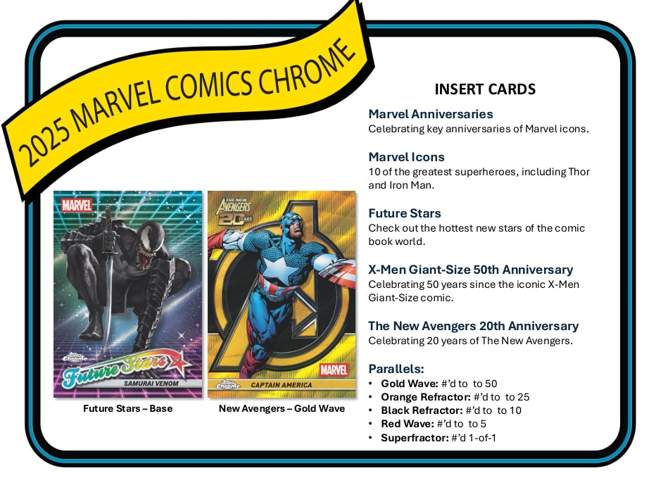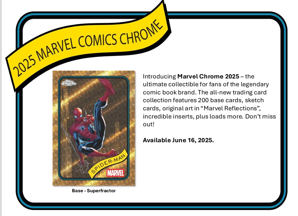 Introducing Marvel Chrome 2025 – the ultimate collectible experience celebrating the rich legacy and evolving future of the Marvel Comics universe, brought to life in premium Chrome finish.