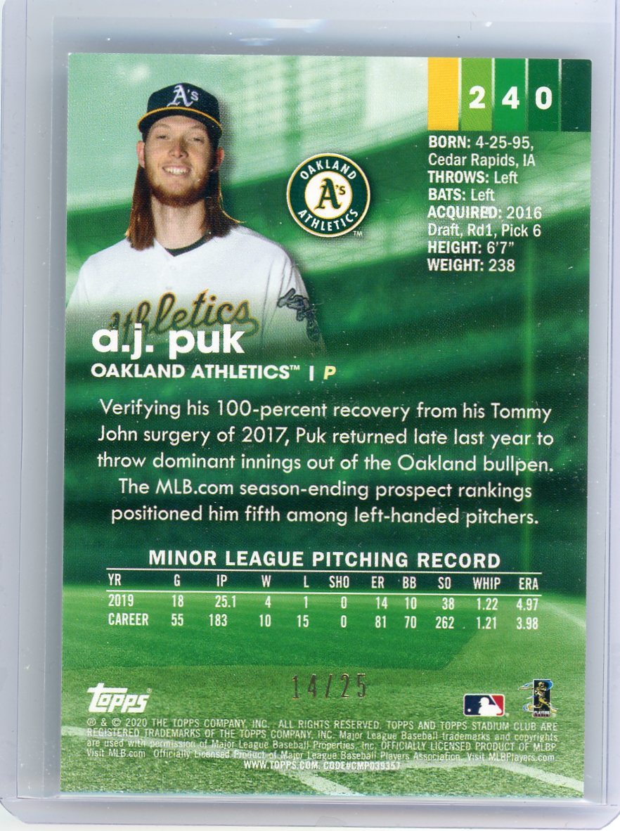 A.J. Puk 2020 Topps Stadium Club rookie foil #'d 14/25