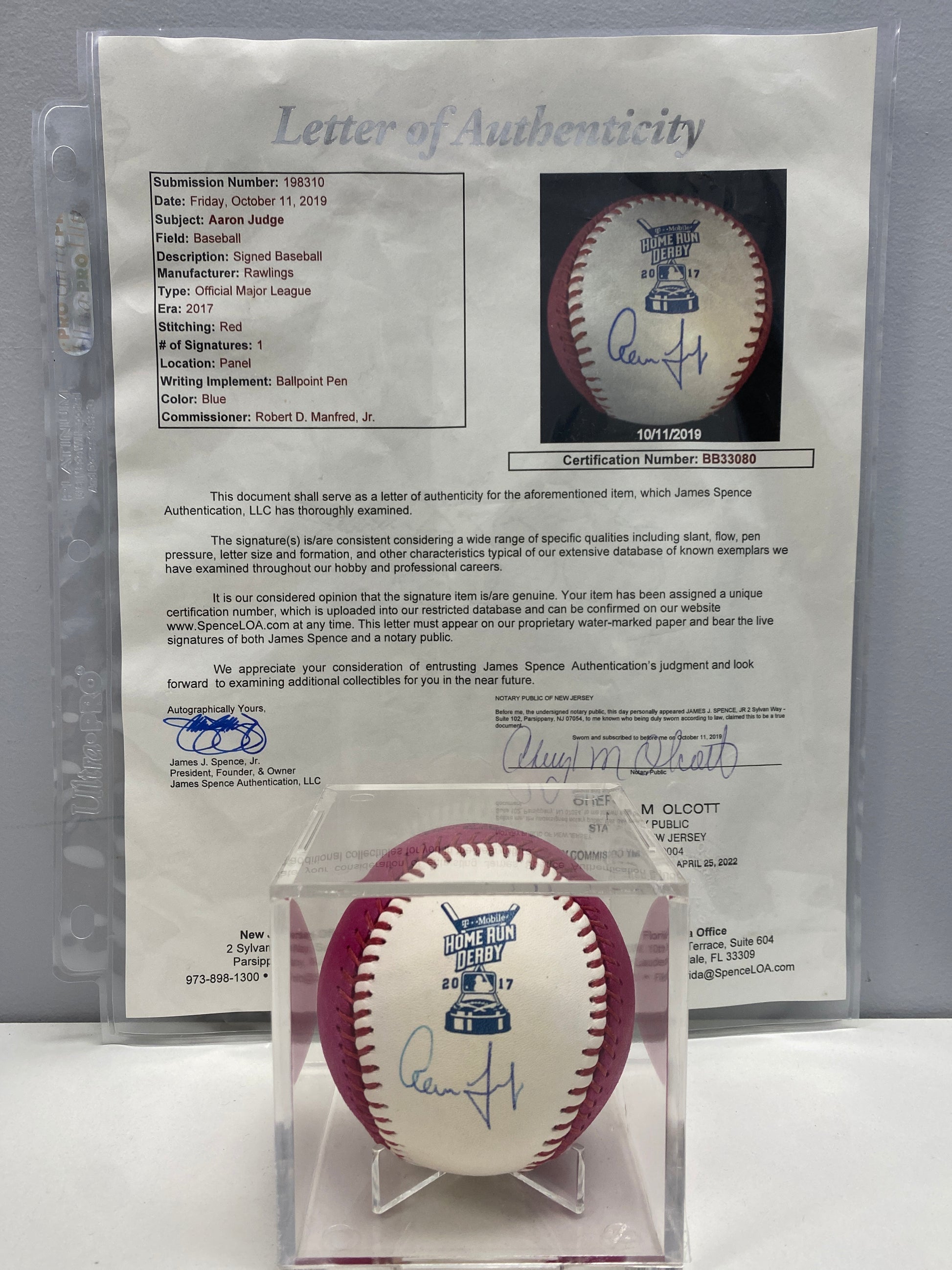 Aaron Judge 2017 Home Run Derby Autographed Ball W/JSA Certification