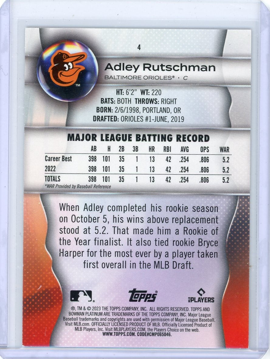 Adley Rutschman 2023 Bowman Platinum Blue Rookie #'d 033/150
