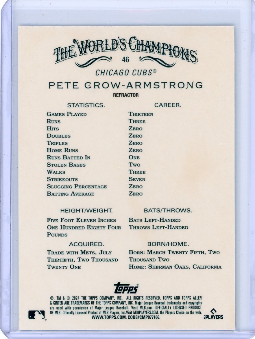 Pete Crow-Armstrong 2024 Topps Allen & Ginter Chrome refractor rookie card