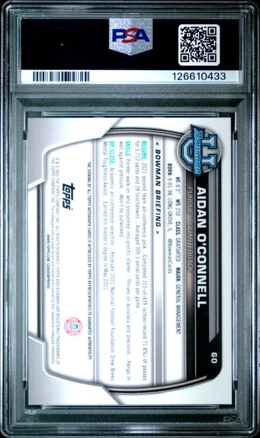 Aidan O'Connell 1st Bowman Chrome University autograph PSA 10
