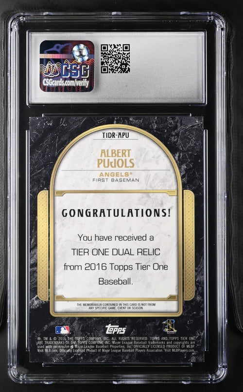 Albert Pujols 2016 Topps Tier One Relics Dual Patches #'d 22/50 CSG 9.5