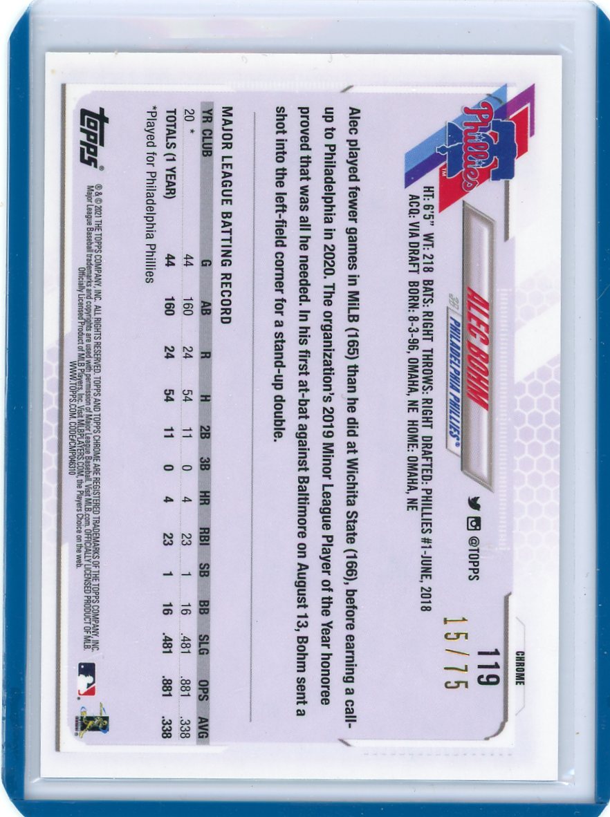 Alec Bohm 2021 Topps Chrome blue wave refractor rookie card #'d 15/75