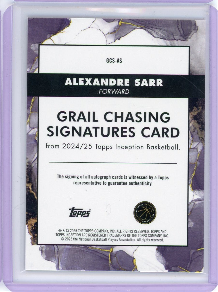 Alexandre Sarr 2024-25 Topps Inception Grail Chasing autograph rookie card gold #'d 40/50