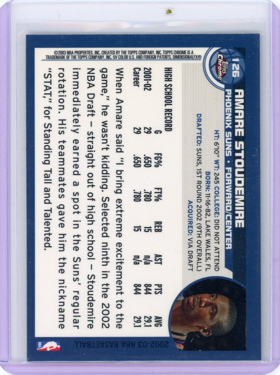 Amare Stoudemire 2003 Topps Chrome rookie card #126
