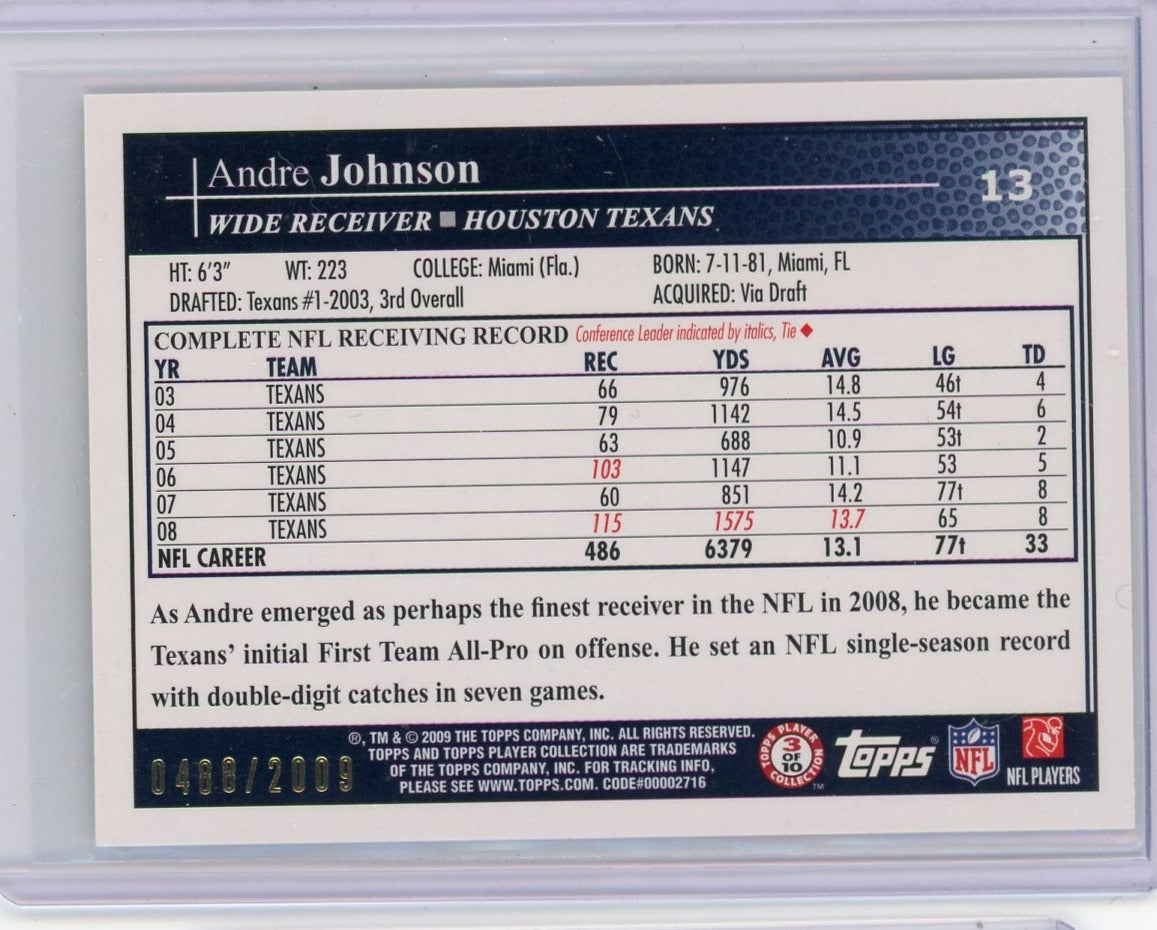 Andre Johnson 2009 Topps NFL Kickoff stamped #'d 0488/2009