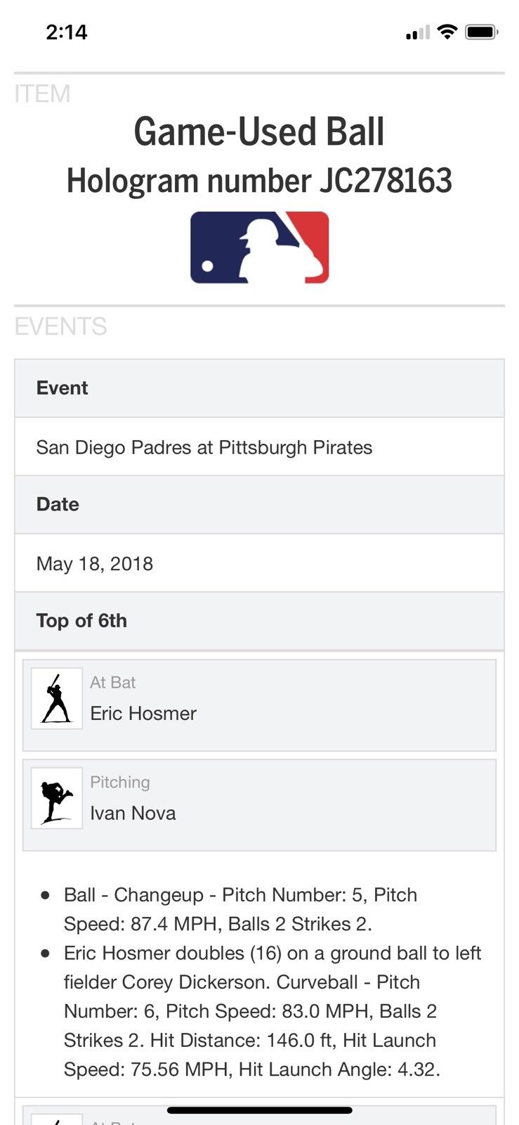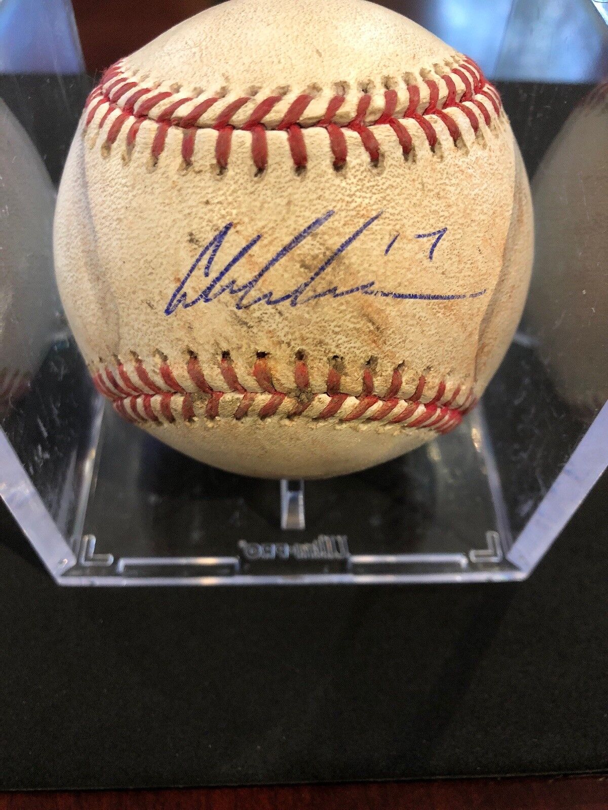 Austin Meadows MLB Debut Game Used Autographed Baseball 5/29/18 Hosmer Double