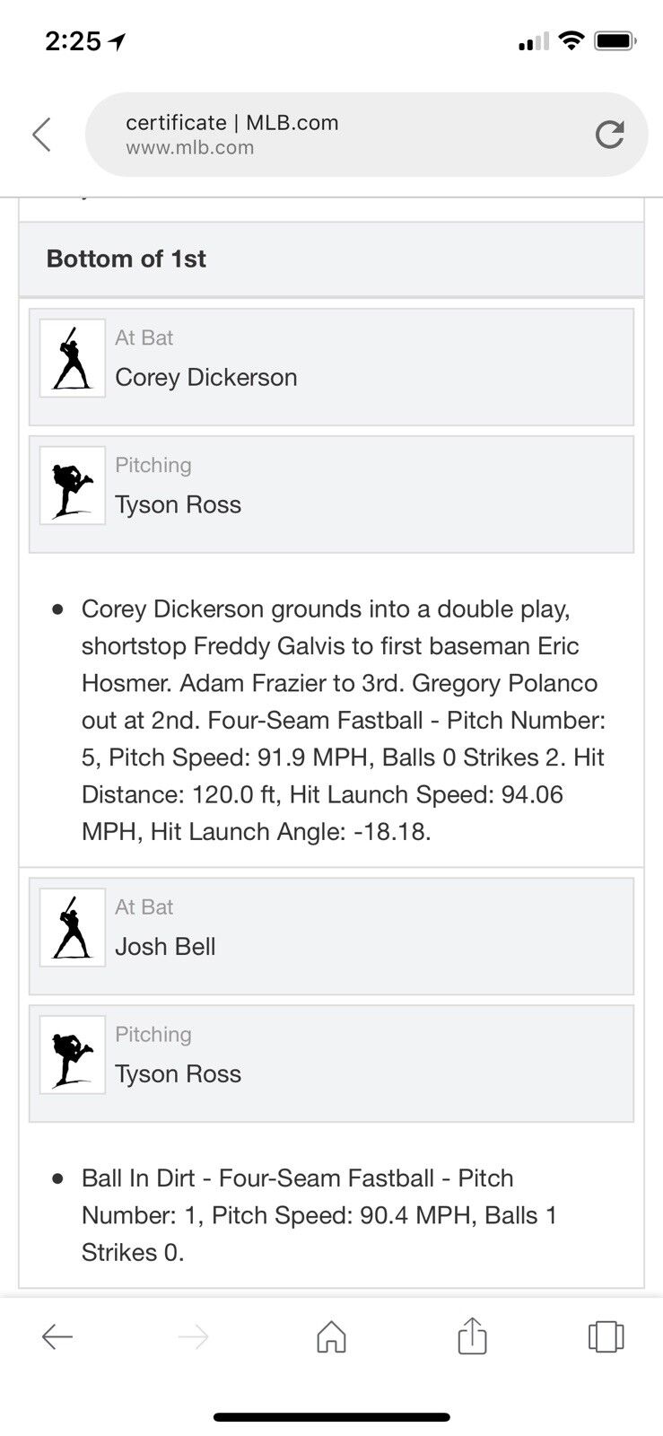 Austin Meadows MLB Debut Game Used Autographed Inscribed Baseball 5/18/18