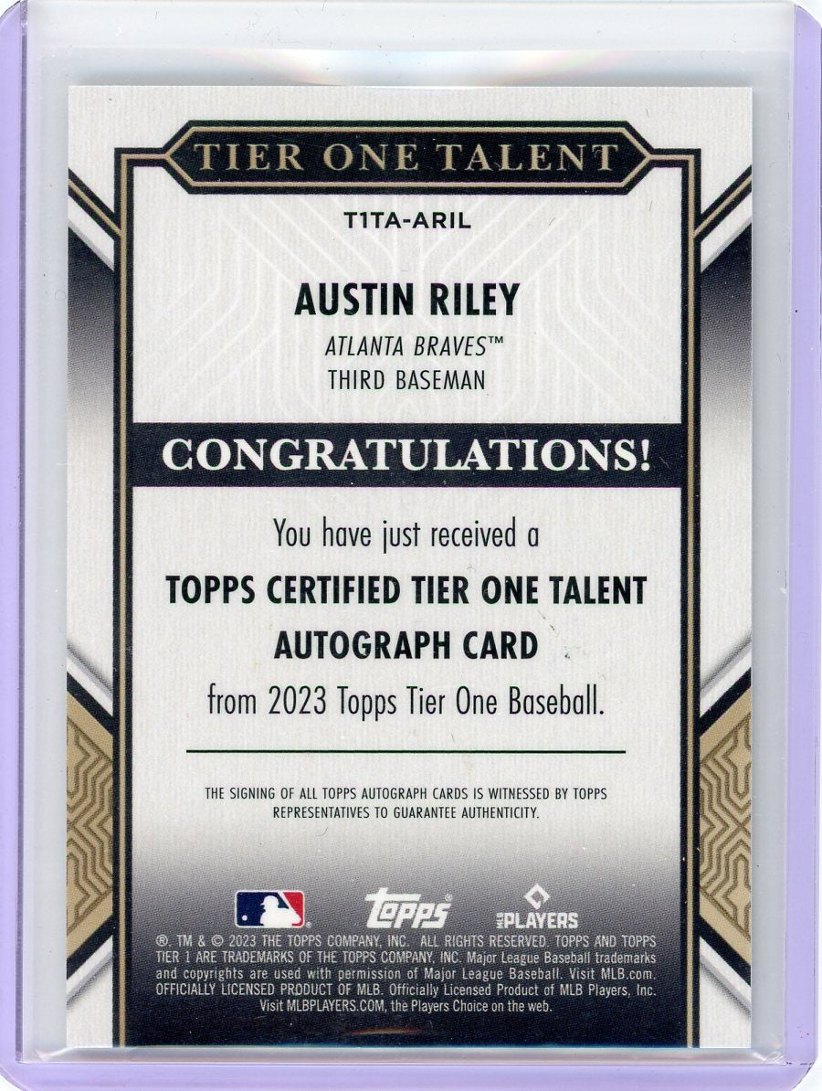 Austin Riley 2023 Topps Tier One Talent autograph bronze signature #'d 20/25