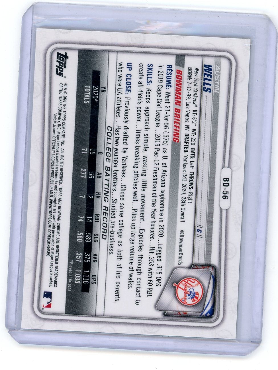 Austin Wells 2020 Bowman Chrome Sapphire 1st Bowman Yellow Refractor #'d 75/99