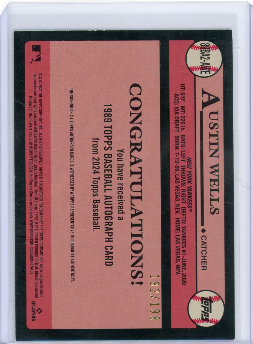 Austin Wells 2024 Topps 1989 35th Anniversary autograph rookie card black #'d 192/199