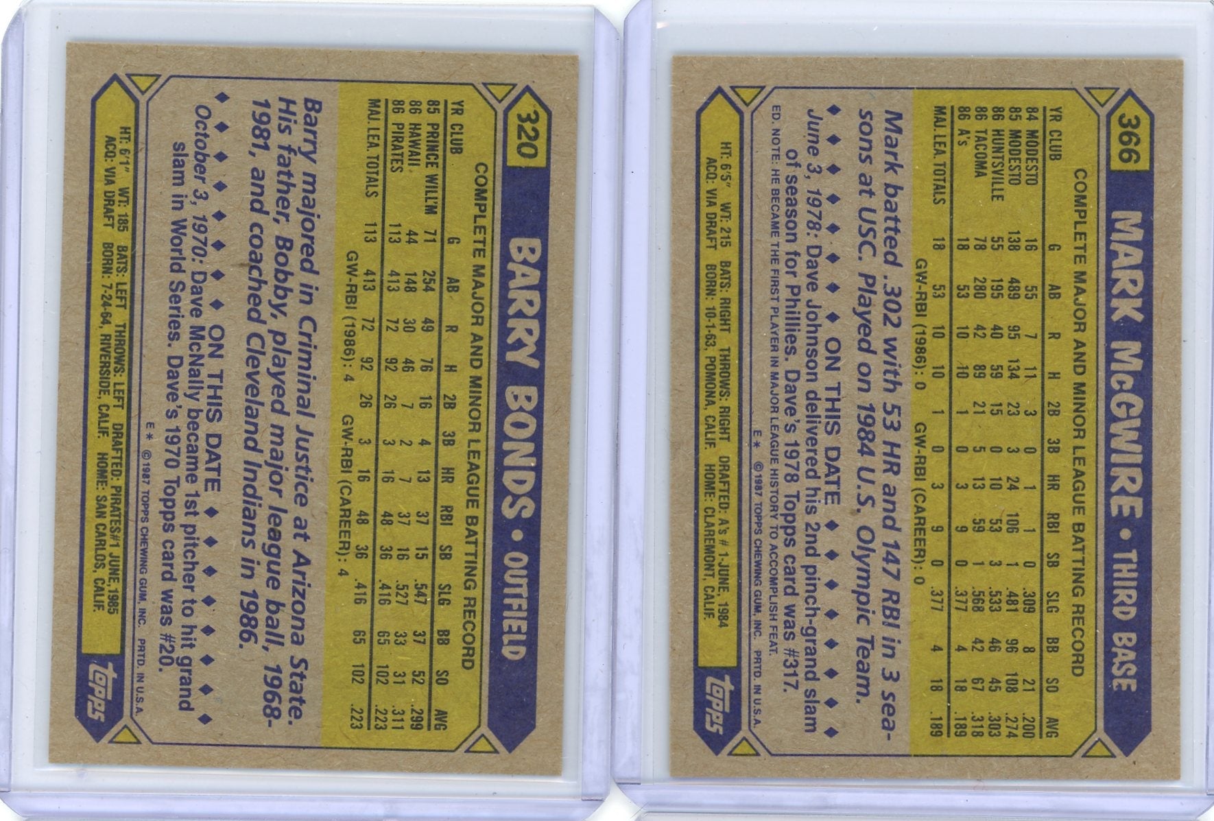 Barry Bonds Mark McGuire 1987 Topps 2-card rookie lot