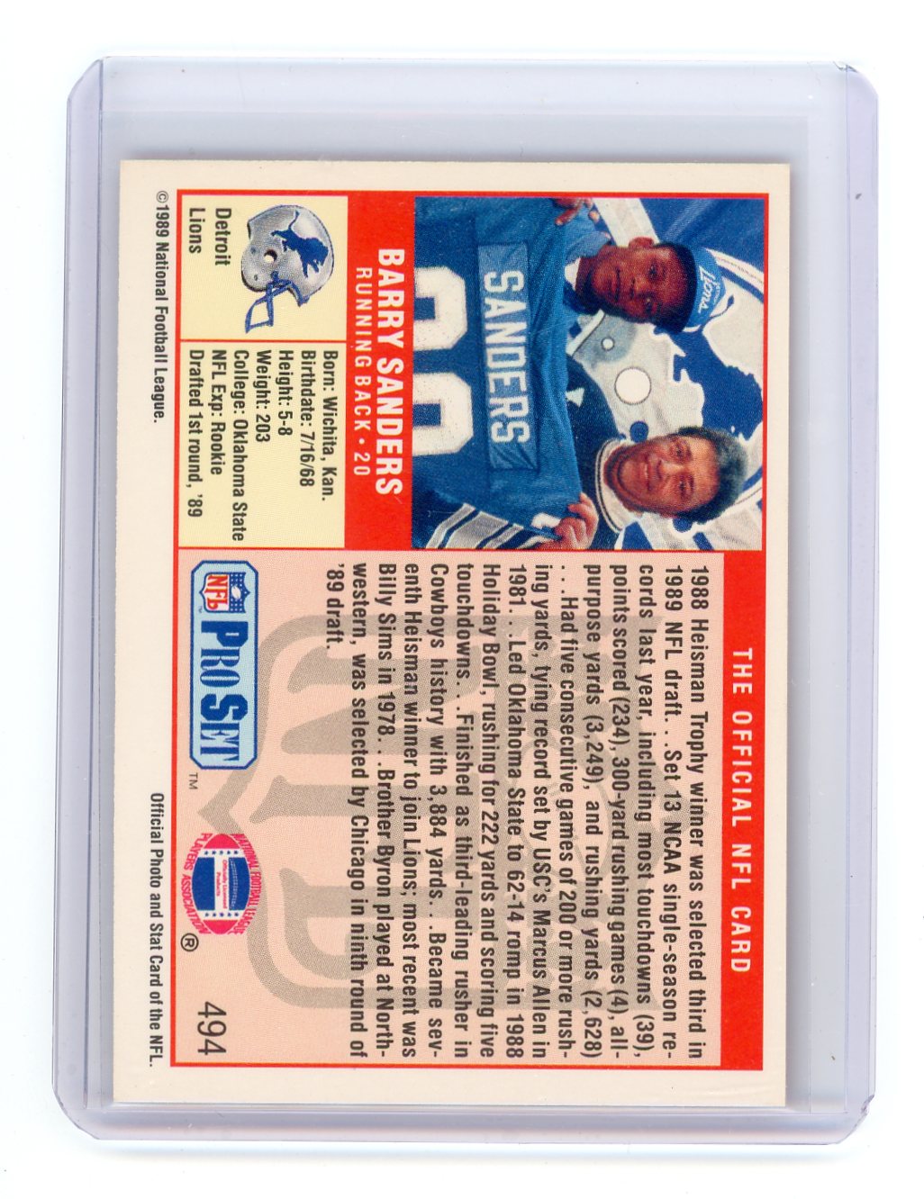 Barry Sanders 1989 Pro Set Rookie Card