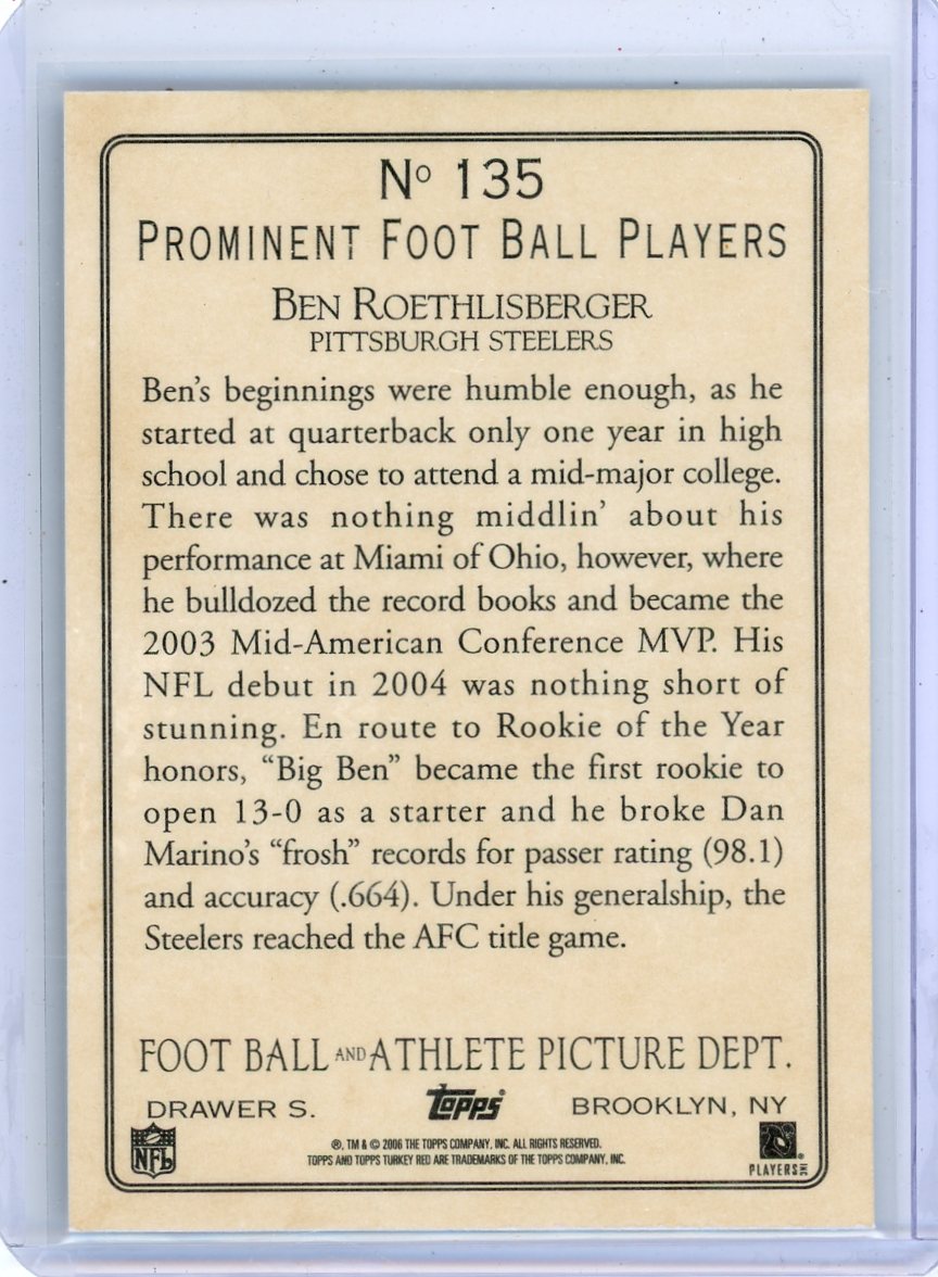 Ben Roethlisberger 2006 Topps Turkey Red IP Auto w/COA