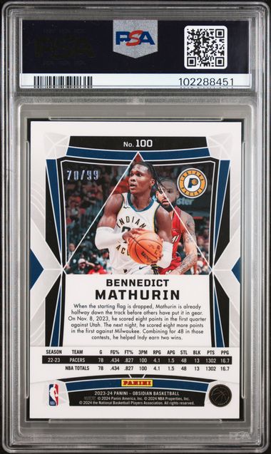 Bennedict Mathurin 2023 Obsidian Electric Etch Orange Flood #'d 70/99 PSA 9