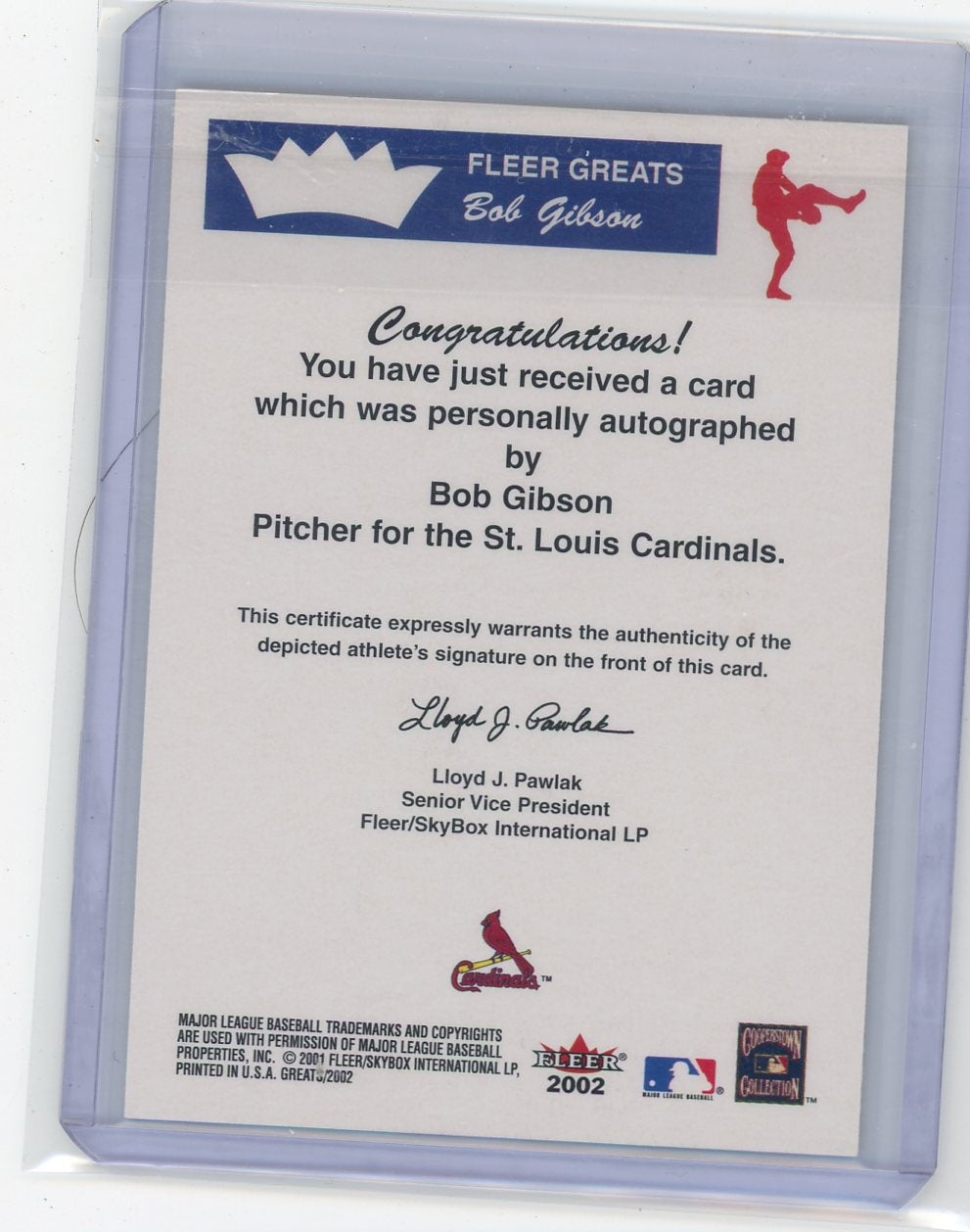 Bob Gibson 2001-02 Fleer Greats autograph