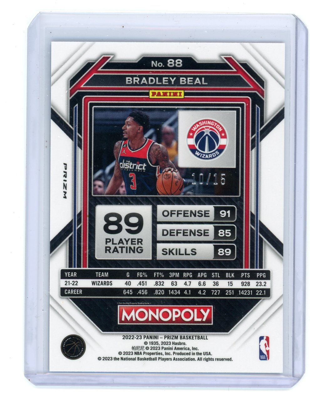 Bradley Beal 2023 Panini Prizm NBA Monopoly Boardwalk Blue Prizm 10/15