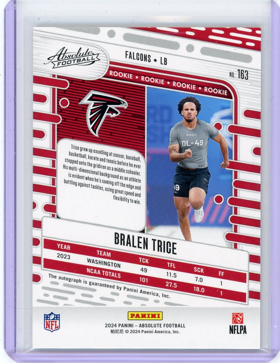 Bralen Trice 2024 Panini Absolute autograph rookie card #'d 47/75