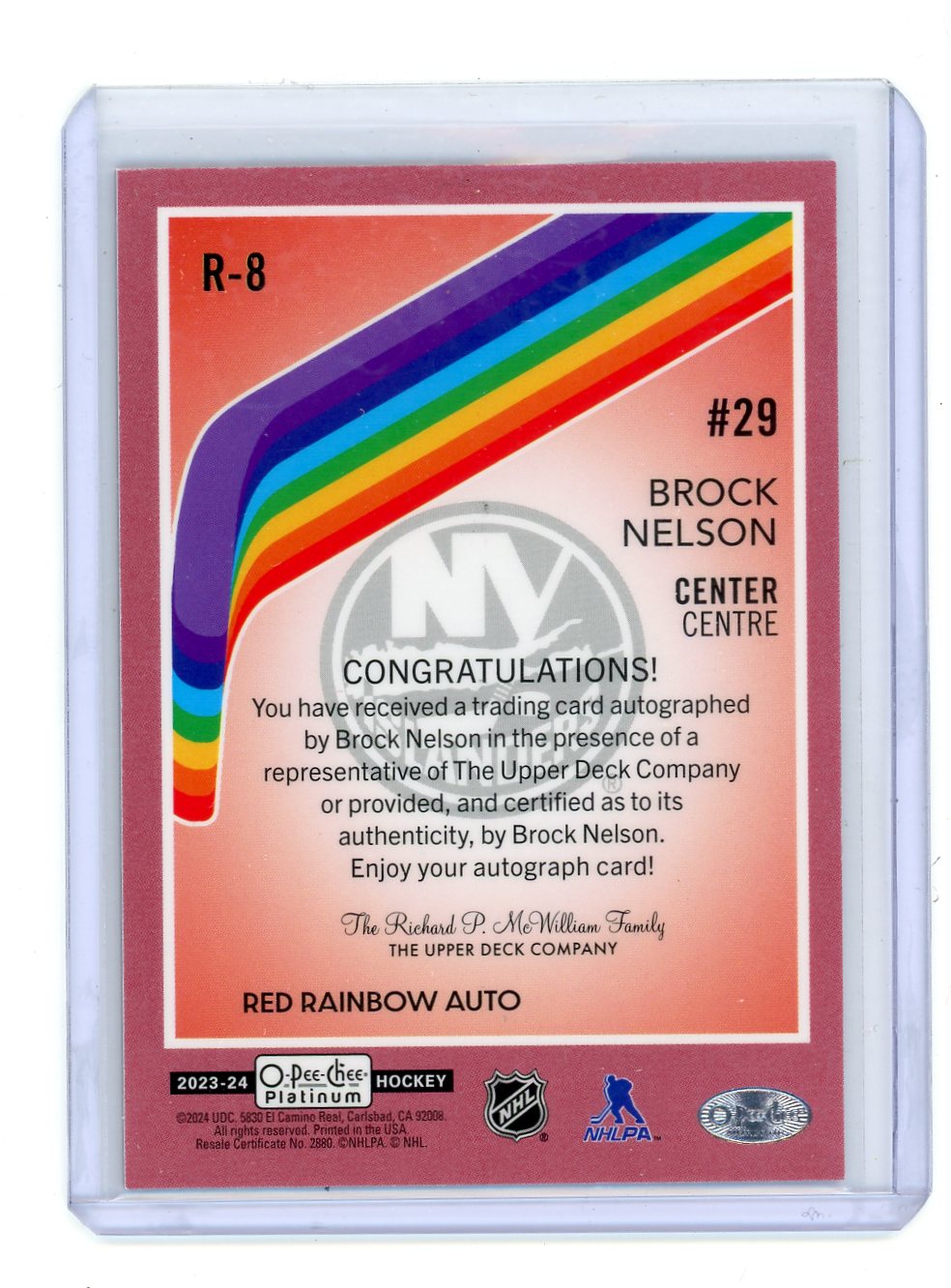 Brock Nelson 2023 Upper Deck O-Pee-Chee Platinum Red Rainbow Auto