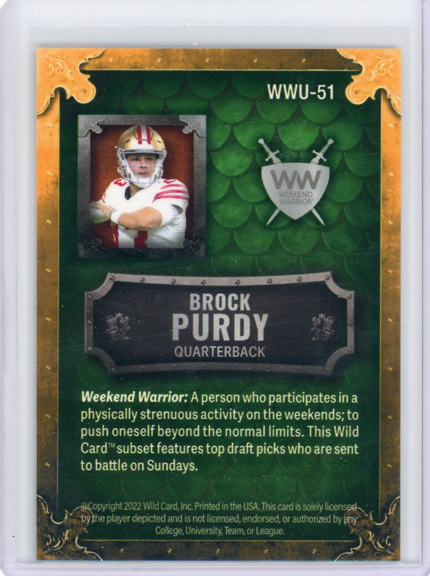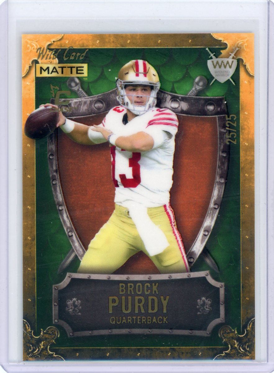 Brock Purdy 2022 Wild Card Matte Weekend Warrior Orange/Green/Crimson #'d 25/25
