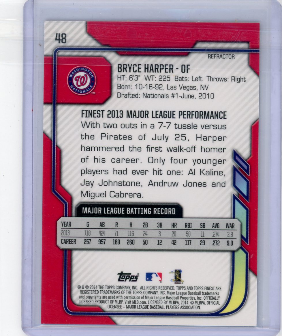 Bryce Harper 2014 Topps Finest Gold Refractor #'d 07/50