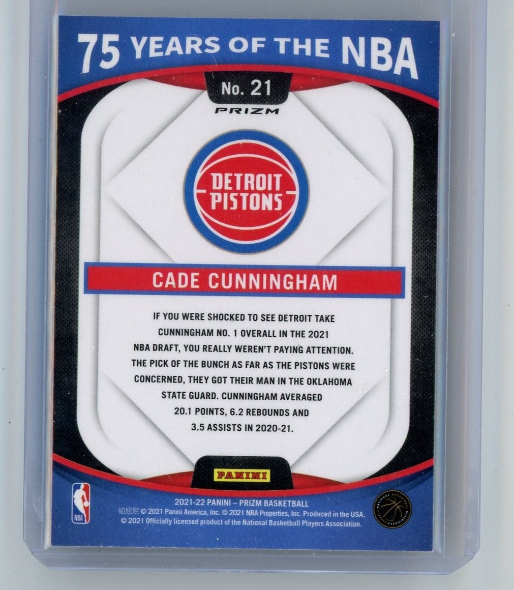 Cade Cunningham 2022 Panini Prizm 75 Years of the NBA Silver Prizm #21