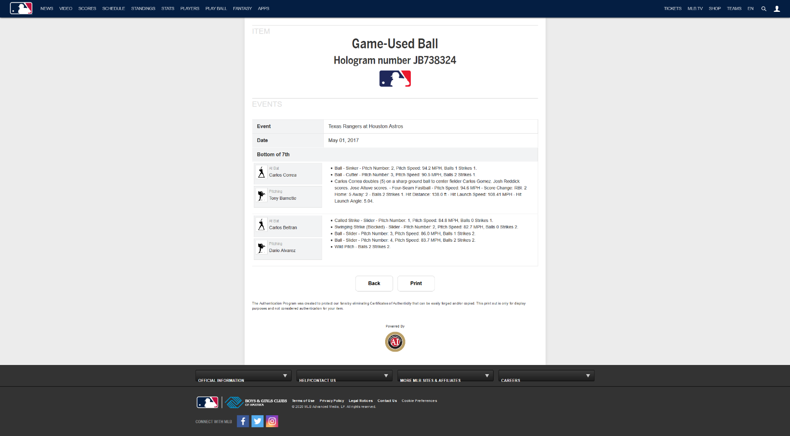 Carlos Correa MLB Game Used Double 2 RBI Autographed Baseball Hit #287 Astros