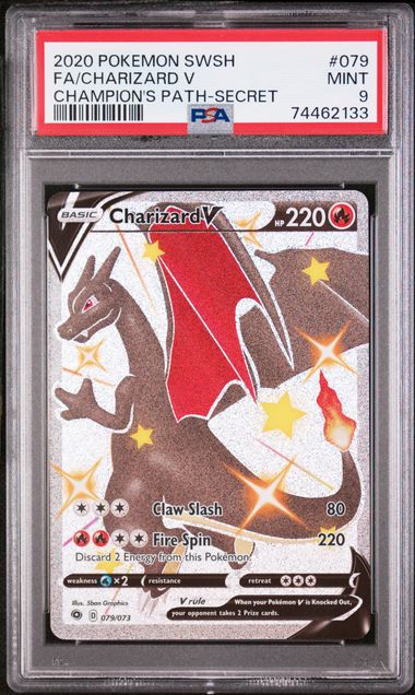 Charizard V Pokémon Champion's Path Shiny Full-Art Secret Rare #079/073 PSA 9