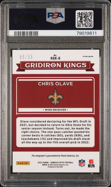 Chris Olave 2022 Donruss Optic Rookie Gridiron Kings-Auto #'d 95/99 PSA 10