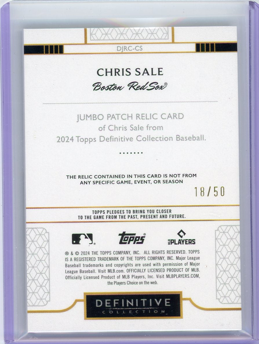 Chris Sale 2024 Topps Definitive Collection Jumbo Patch Relic #'d 18/50